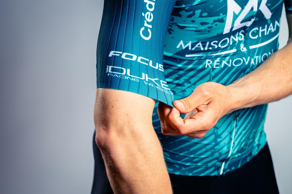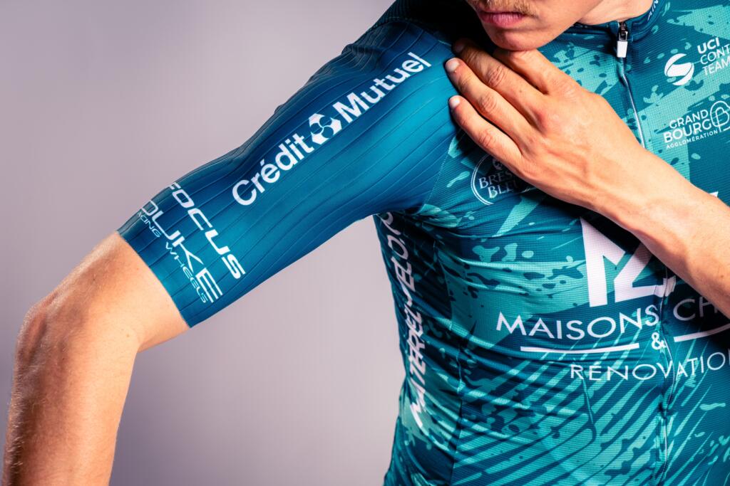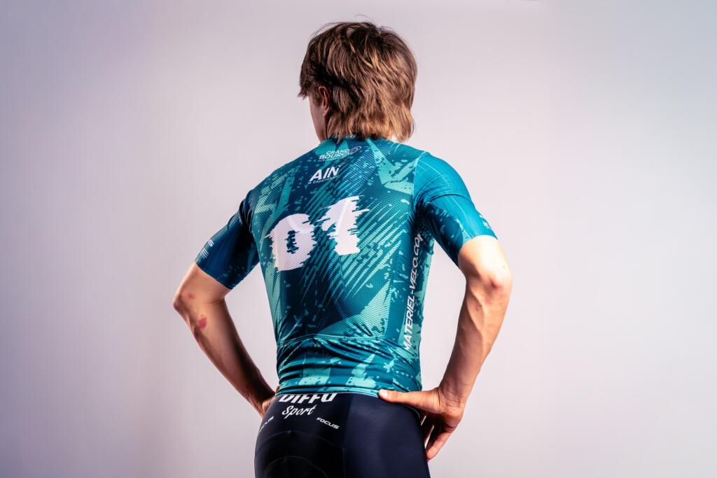 Après une refonte totale en 2025, la tenue 2026 évolue avec subtilité. Le vert du maillot et le noir du cuissard, couleurs historiques du blason de la ville de Bourg-en-Bresse, demeurent au cœur d’un design moderne, épuré et monochrome. Dans le dos, la pastille « 01 » massive affirme une nouvelle fois l’ancrage territorial du projet en entier : ici, c’est l’Ain.